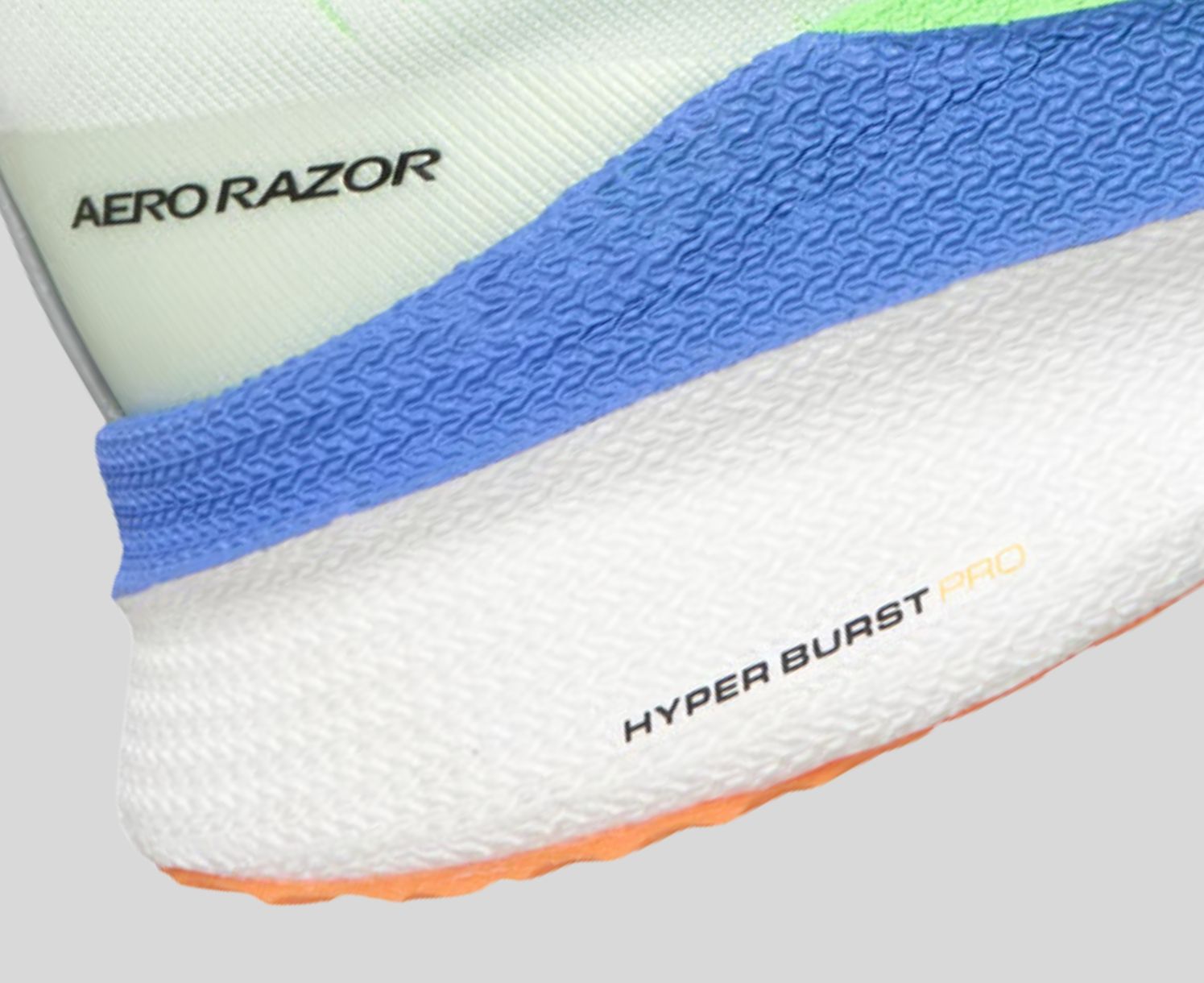 ハイパーバーストプロ™ミッドソールフォームは、高反発性と超軽量性を兼ね備えたスーパークリティカル™フォームクッション素材で形成されています。