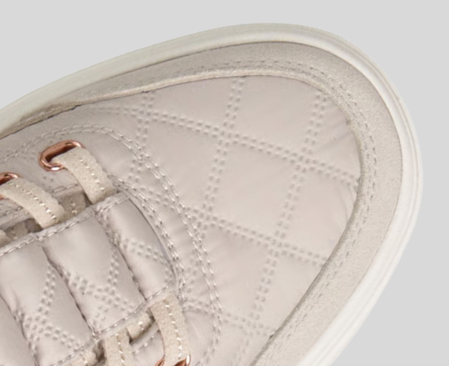 - 固定式ストレッチレースを配したエアキルト生地とスエードのアッパー