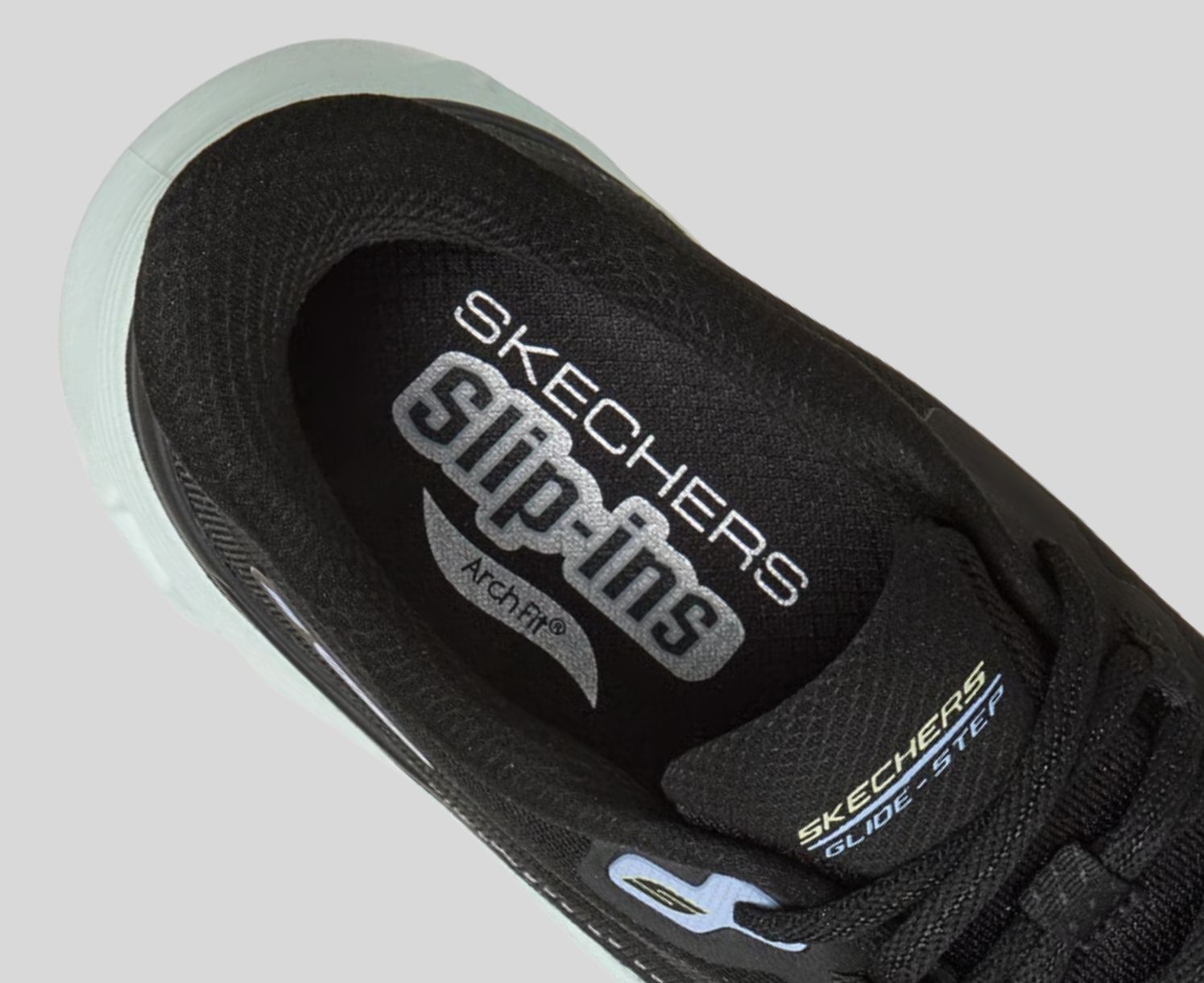 The Skechers Glide-Step® geometric midsole is designed to provide natural momentum with every step, offering a pillow-like soft landing and explosive takeoff.
