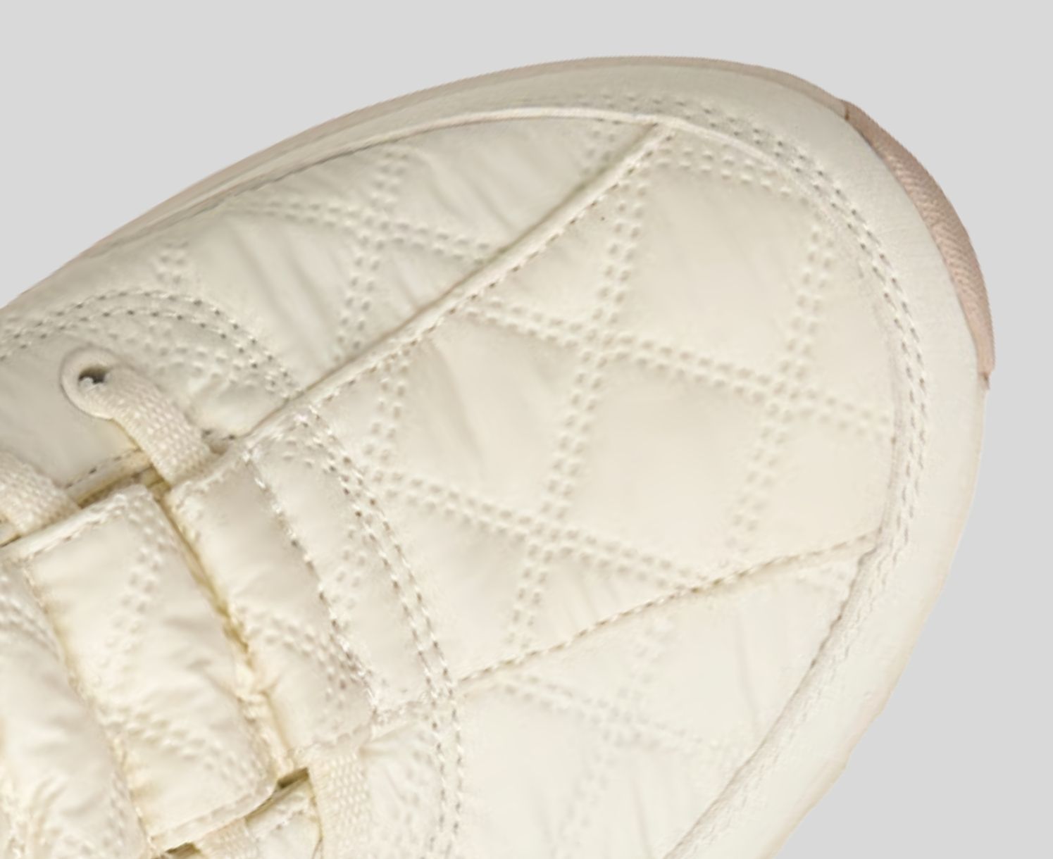 - エアキルト生地と人工皮革のアッパーに固定式ストレッチレース