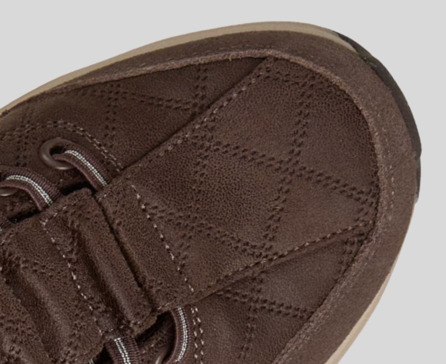 Tied-off decorative laces and an easy slip-on design. Laces never come untied.