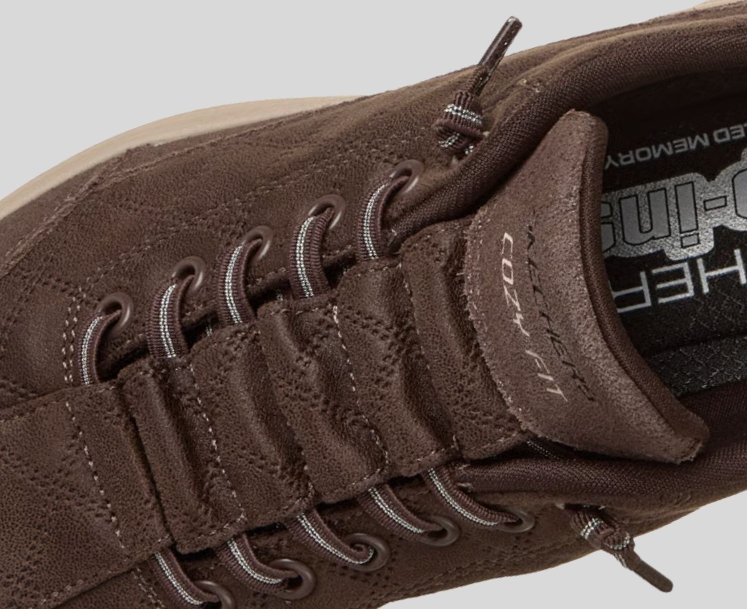 Skechers Cozy Fit® premium soft quilted materials wrap your feet in luxury, providing a cozy, natural fit for ultimate comfort.