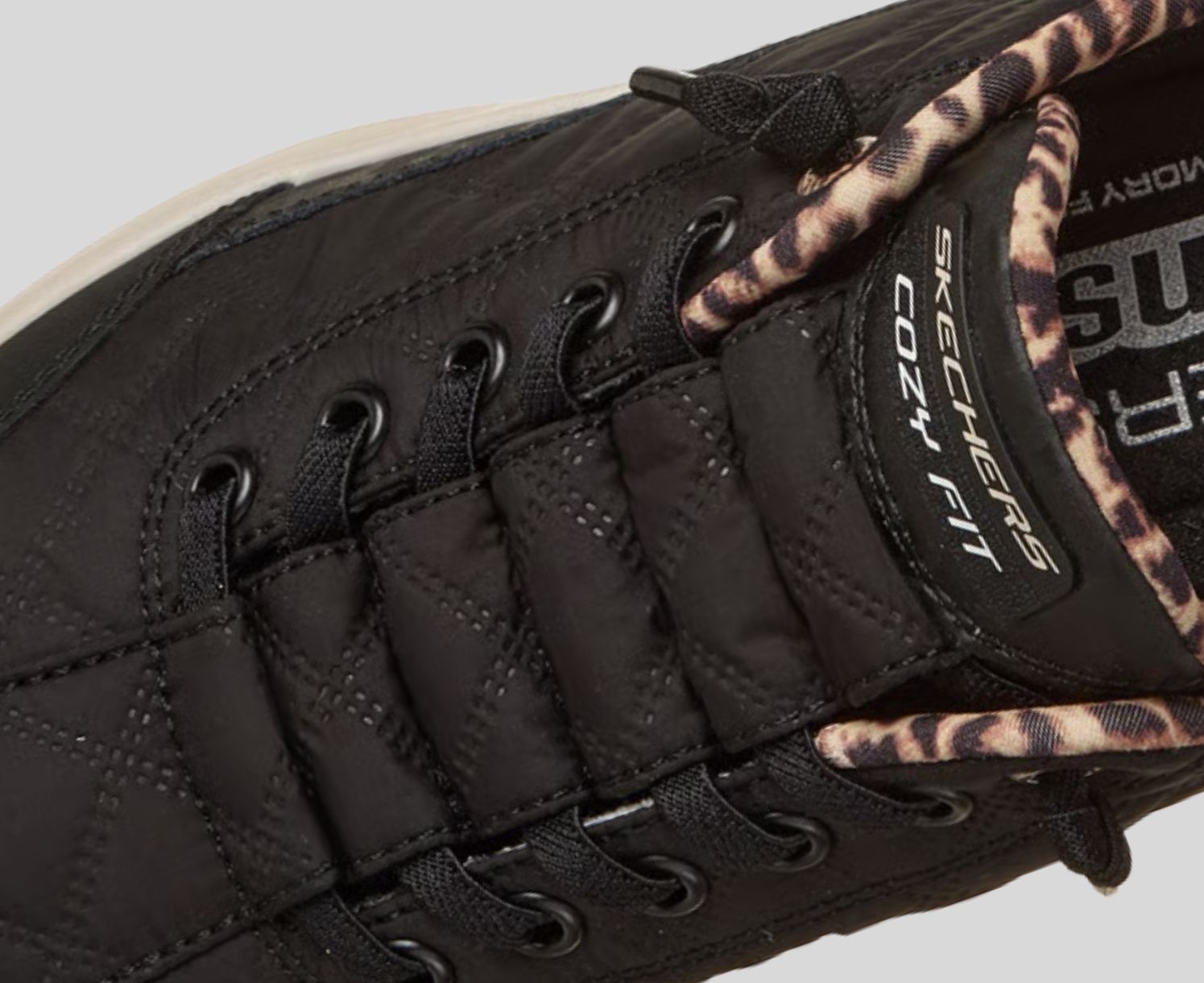 Skechers Cozy Fit® premium soft quilted materials wrap your feet in luxury, providing a cozy, natural fit for ultimate comfort.