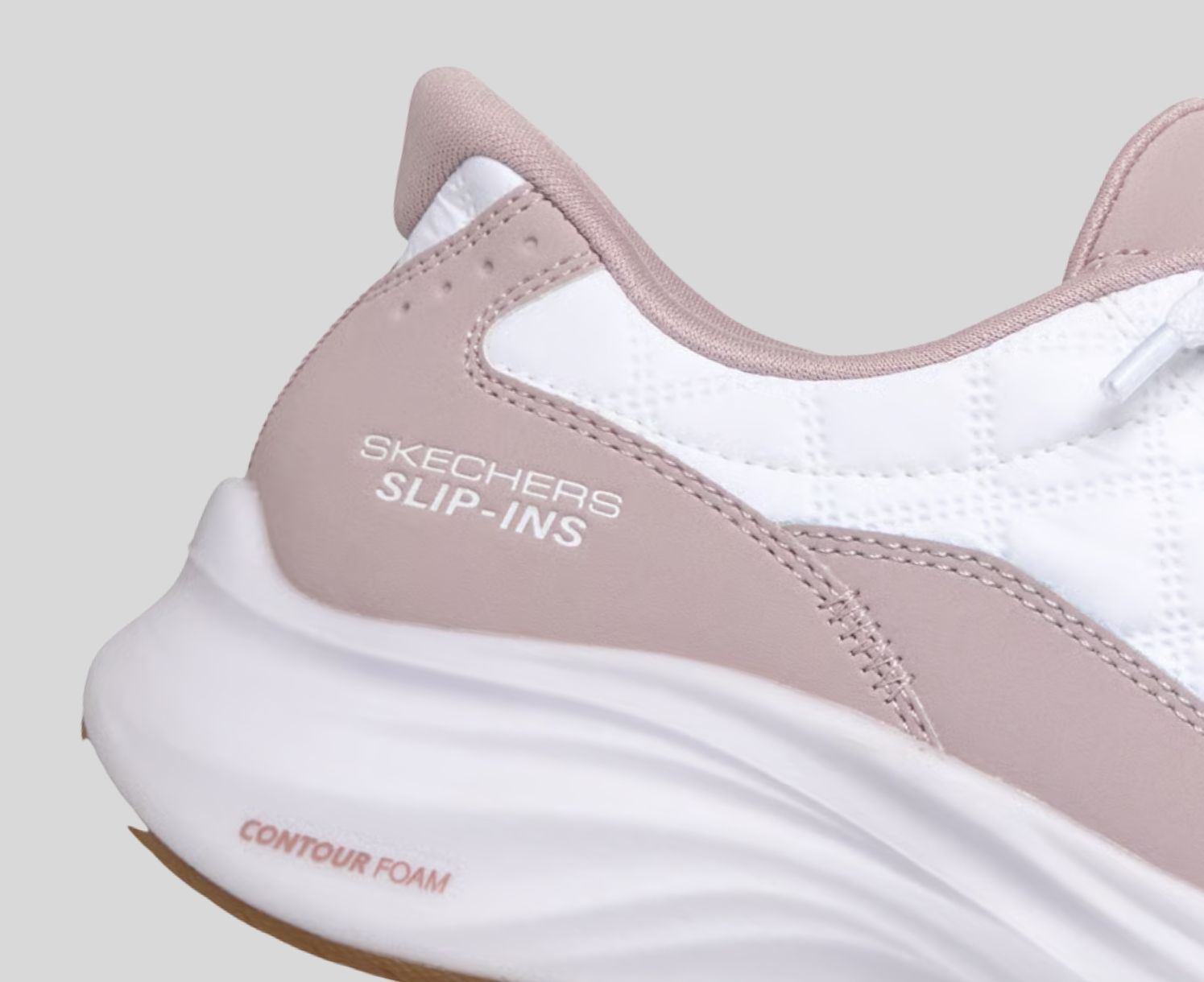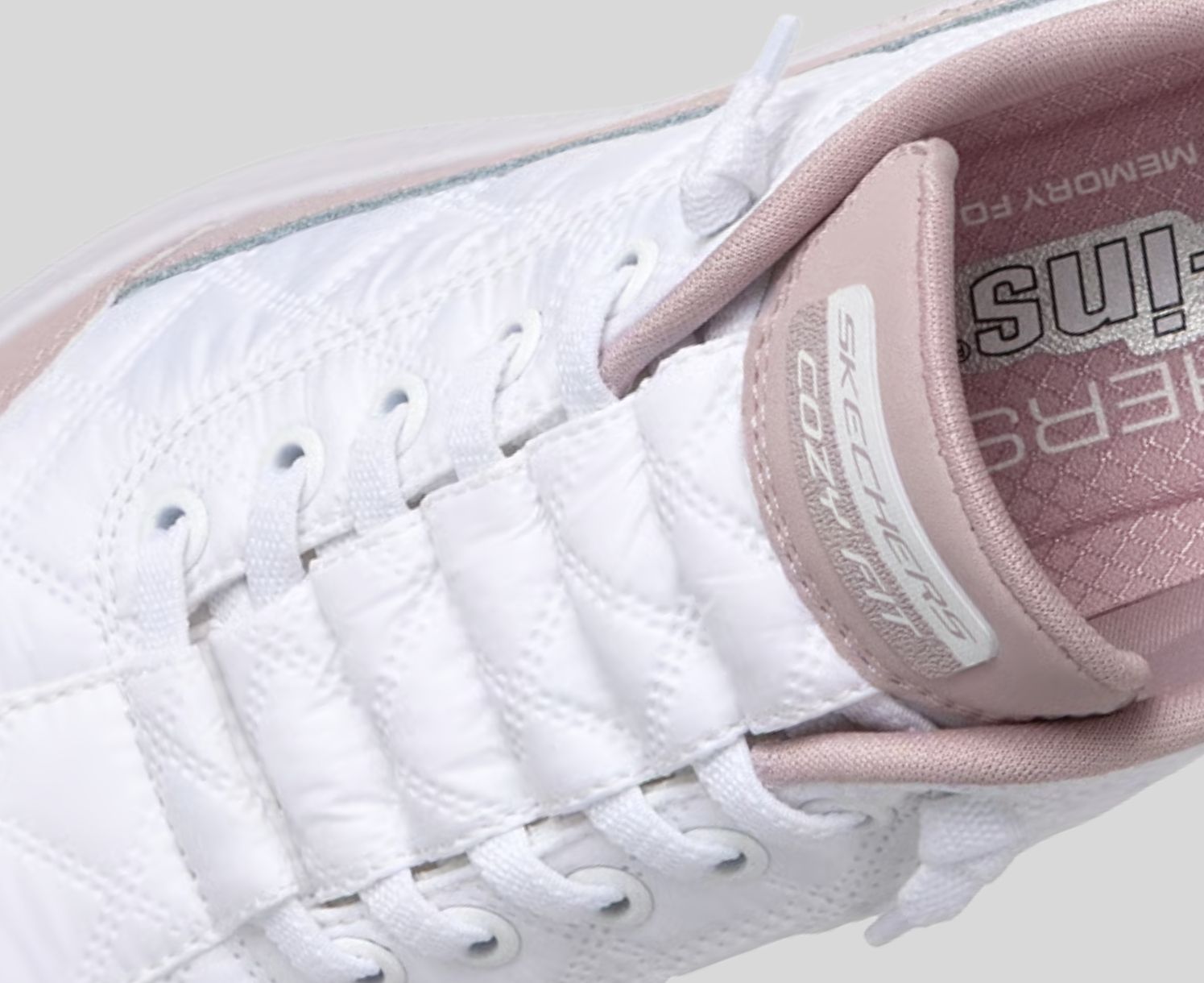 Skechers Cozy Fit® premium soft quilted materials wrap your feet in luxury, providing a cozy, natural fit for ultimate comfort.