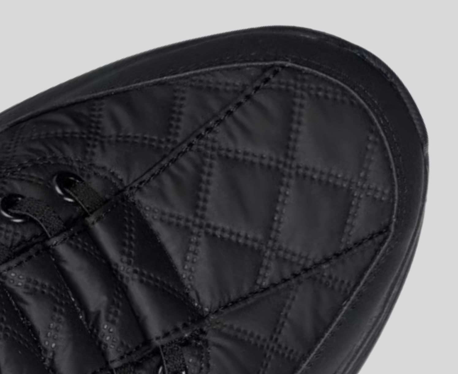 - キルト生地に合成素材のグリッターオーバーレイアッパーと紐を結んだストレッチレース