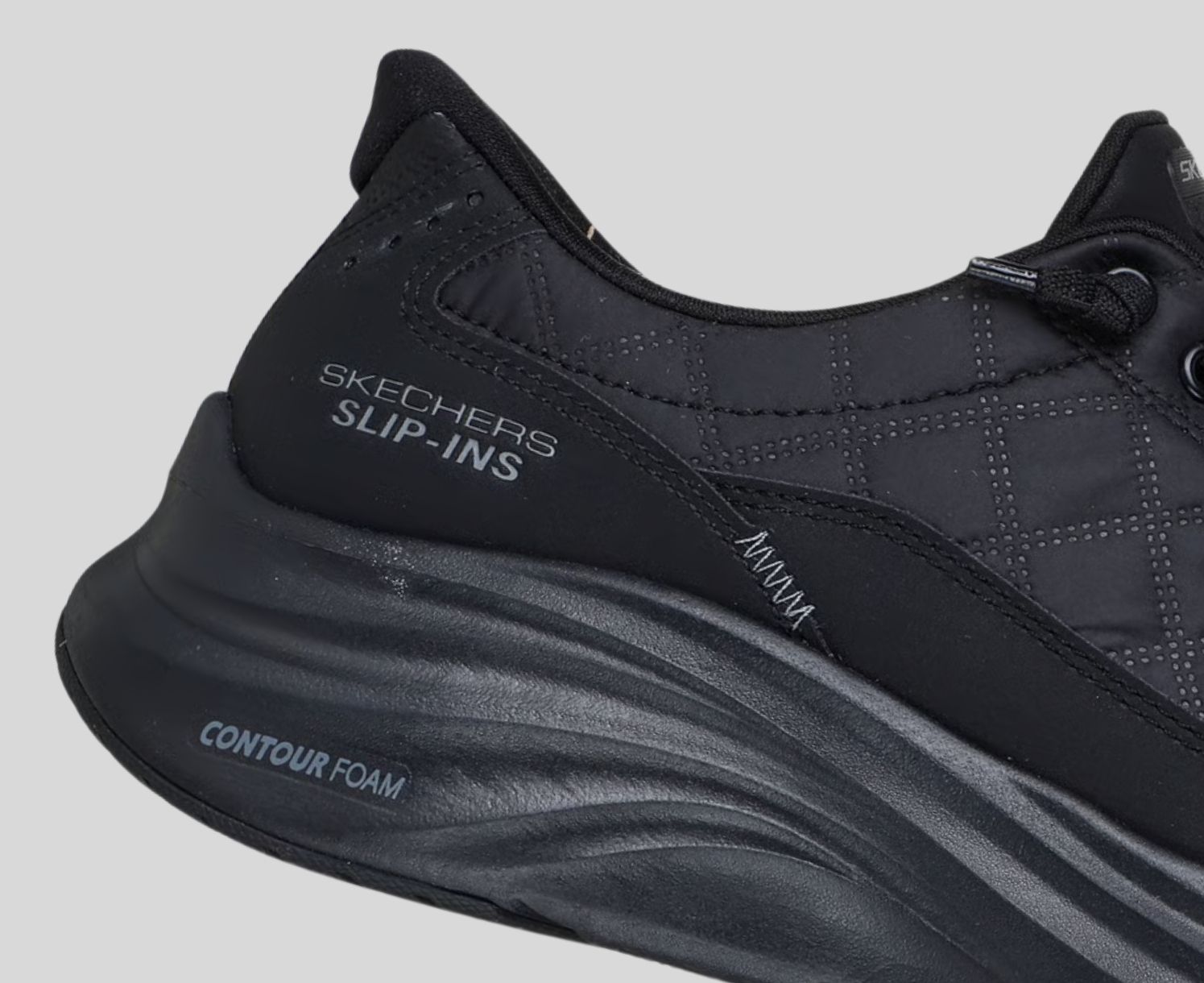 Skechers Cozy Fit® premium soft quilted materials wrap your feet in luxury, providing a cozy, natural fit for ultimate comfort.