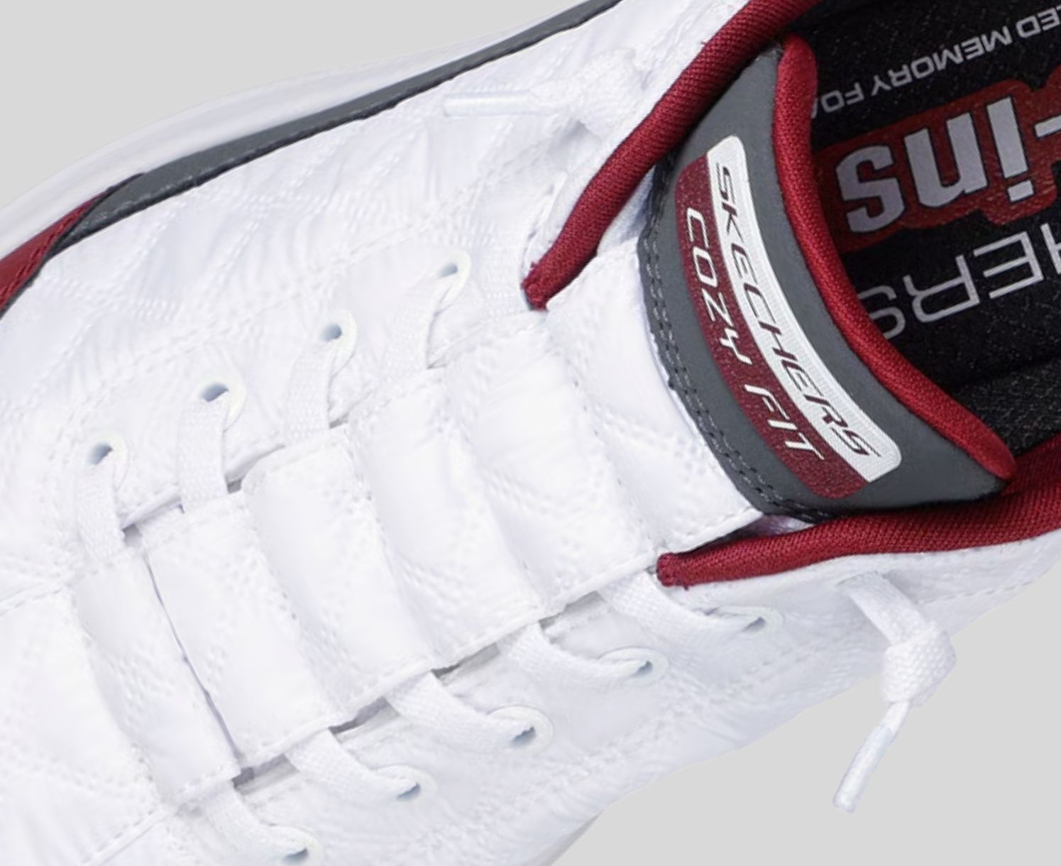 Skechers Cozy Fit® premium soft quilted materials wrap your feet in luxury, providing a cozy, natural fit for ultimate comfort.