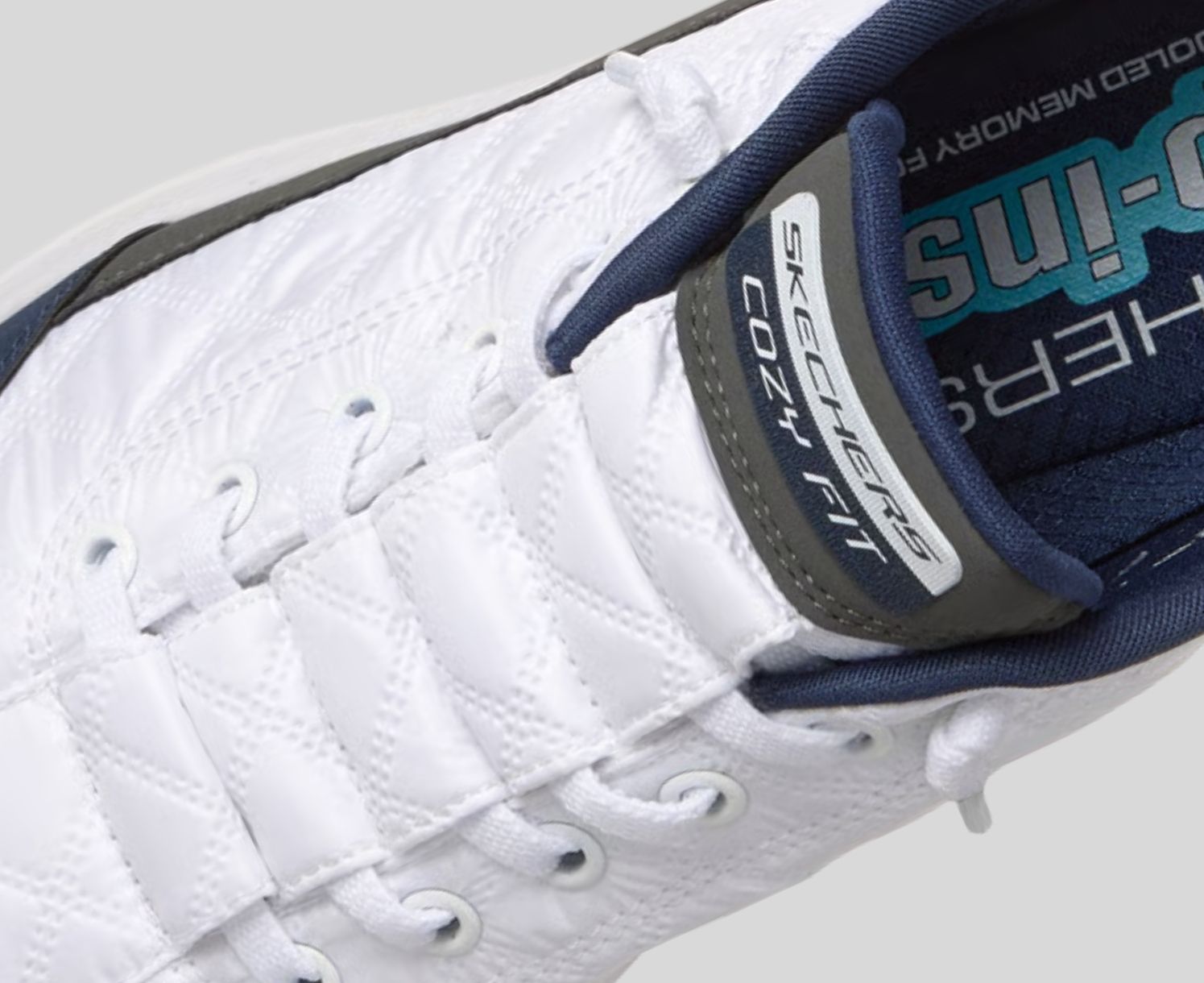 Skechers Cozy Fit® premium soft quilted materials wrap your feet in luxury, providing a cozy, natural fit for ultimate comfort.