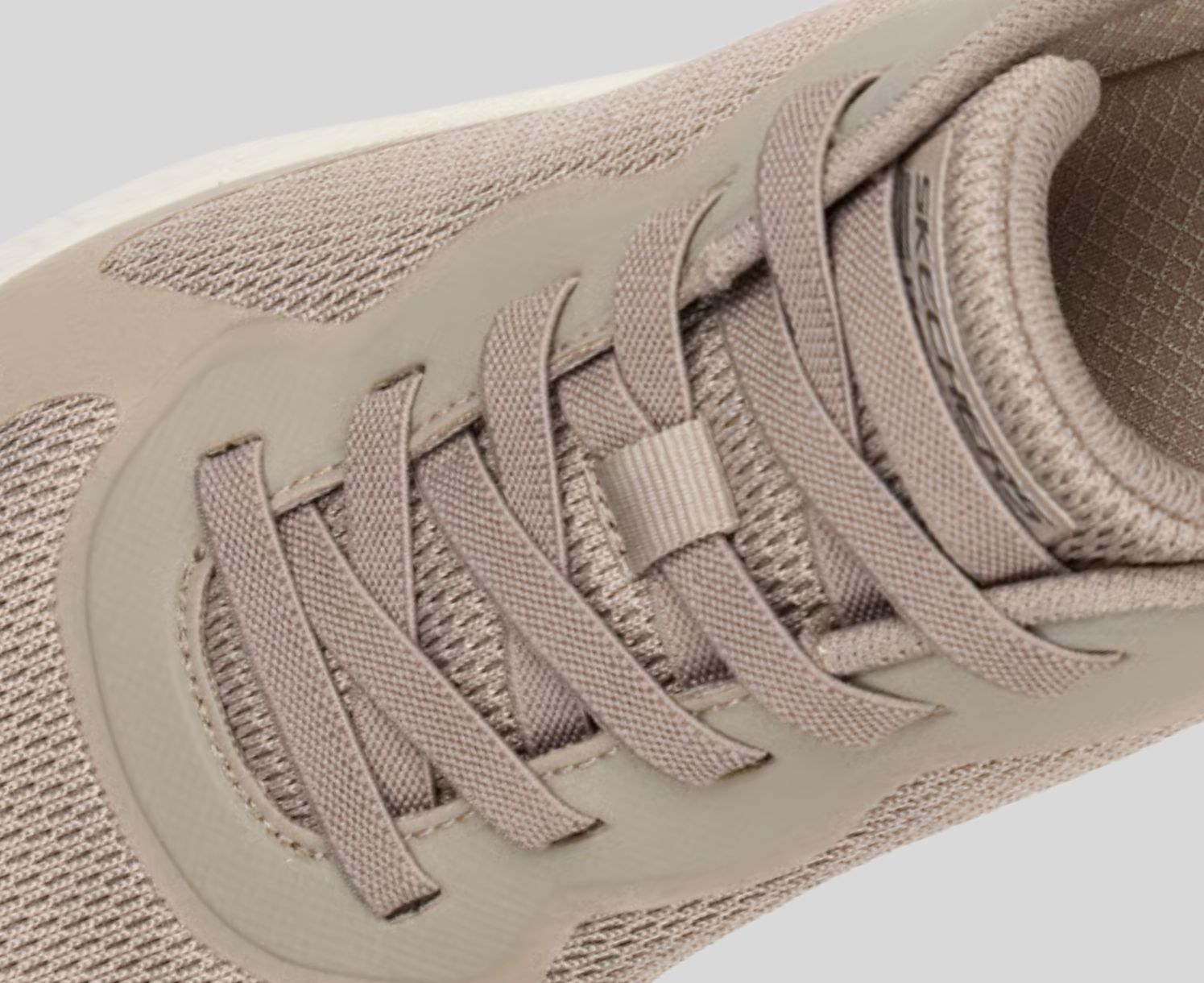 Tied-off decorative laces and an easy slip-on design. Laces never come untied.