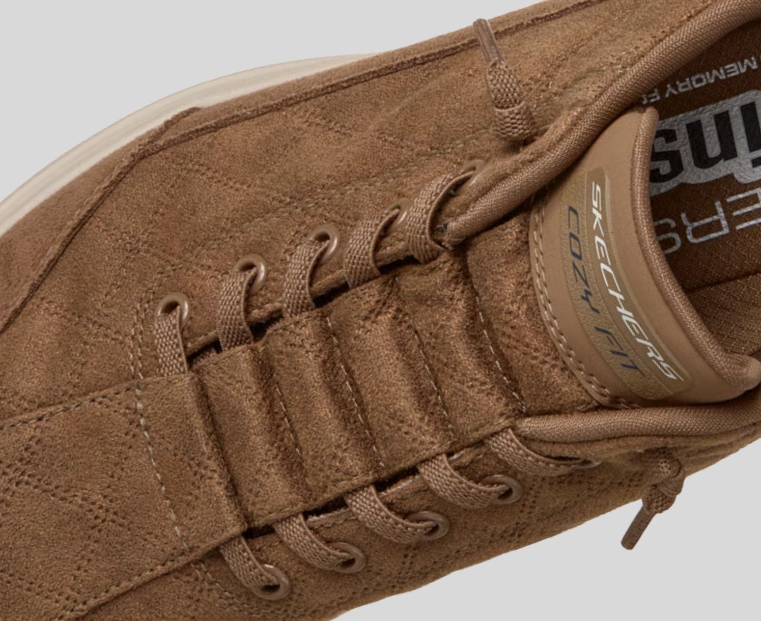 Skechers Cozy Fit® premium soft quilted materials wrap your feet in luxury, providing a cozy, natural fit for ultimate comfort.