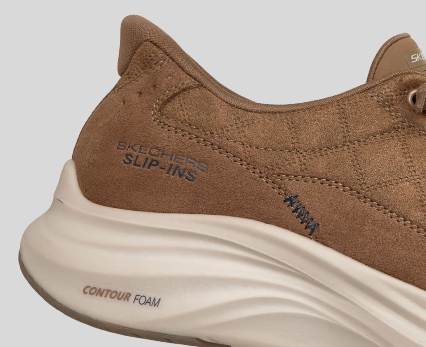 Step into a world of plush comfort with Skechers Hands Free Slip-ins®: Contour Foam - Cozy Fit® Calvoro. Designed with our Heel Pillow®, this slip-on Cozy Fit® style features a quilted suede and synthetic overlay upper with tied-off stretch laces, Contour Foam midsole cushioning, and our signature cushioned Skechers Air-Cooled Memory Foam® insole.