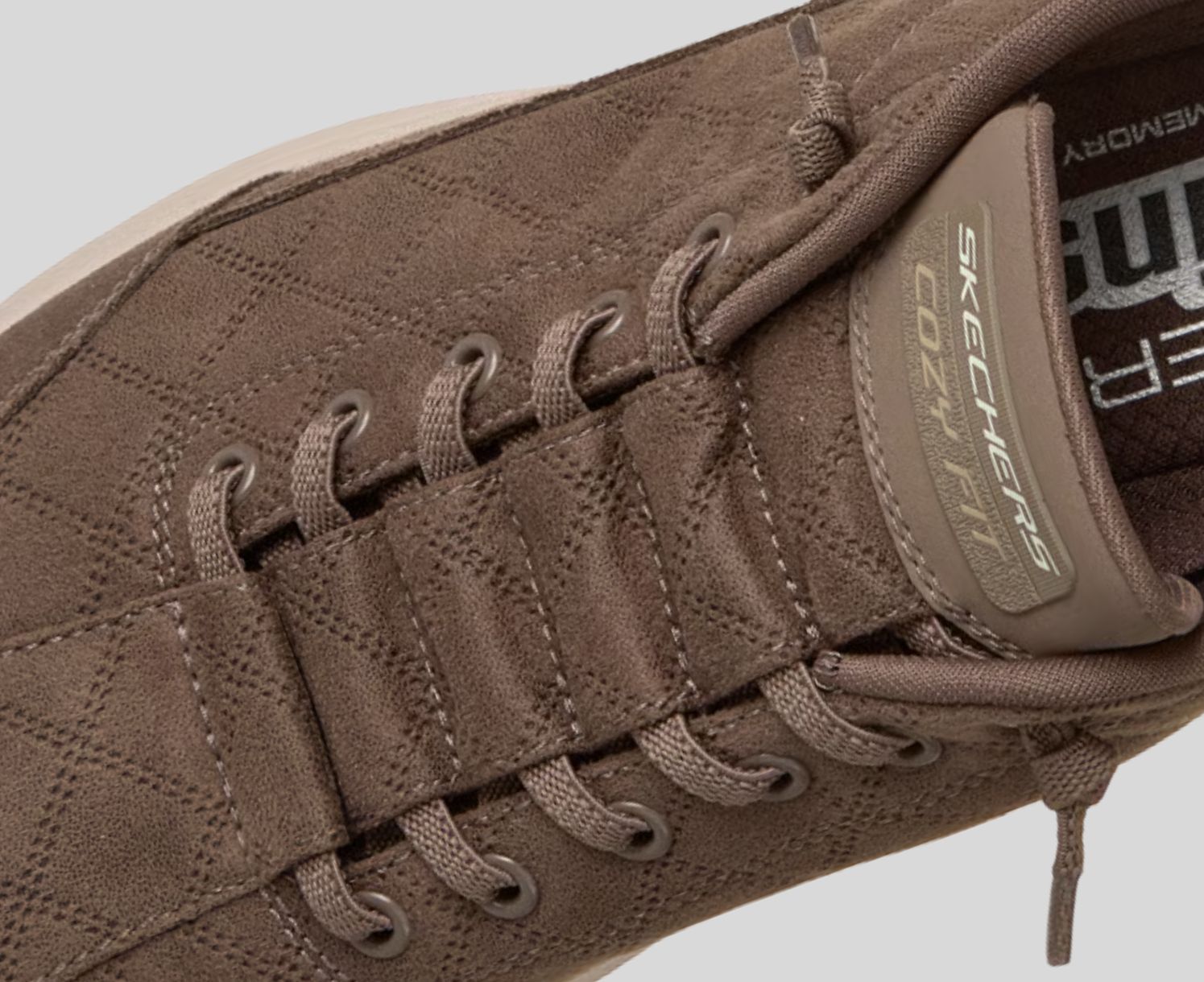 Skechers Cozy Fit® premium soft quilted materials wrap your feet in luxury, providing a cozy, natural fit for ultimate comfort.
