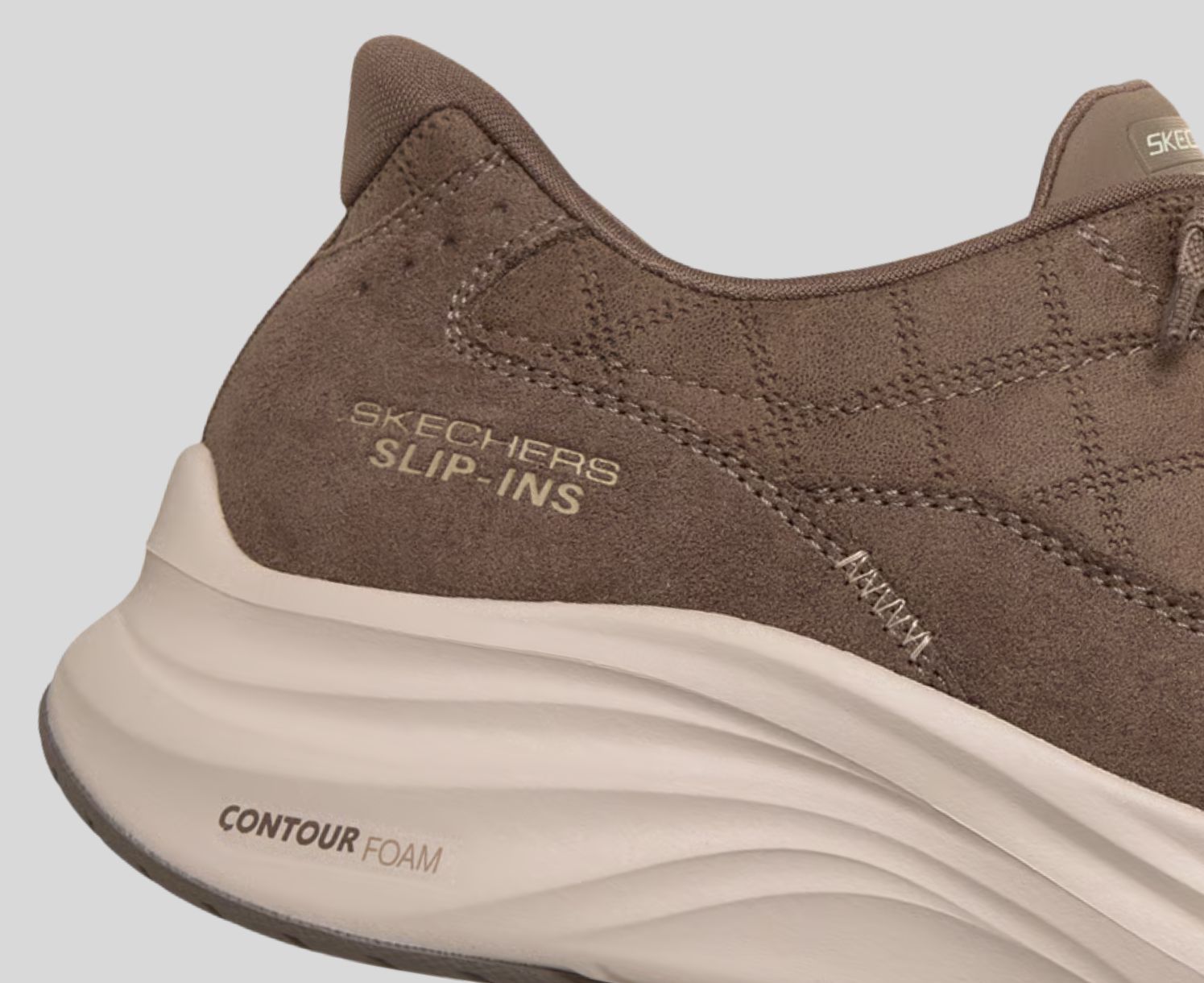 Step into a world of plush comfort with Skechers Hands Free Slip-ins®: Contour Foam - Cozy Fit® Calvoro. Designed with our Heel Pillow®, this slip-on Cozy Fit® style features a quilted suede and synthetic overlay upper with tied-off stretch laces, Contour Foam midsole cushioning, and our signature cushioned Skechers Air-Cooled Memory Foam® insole.