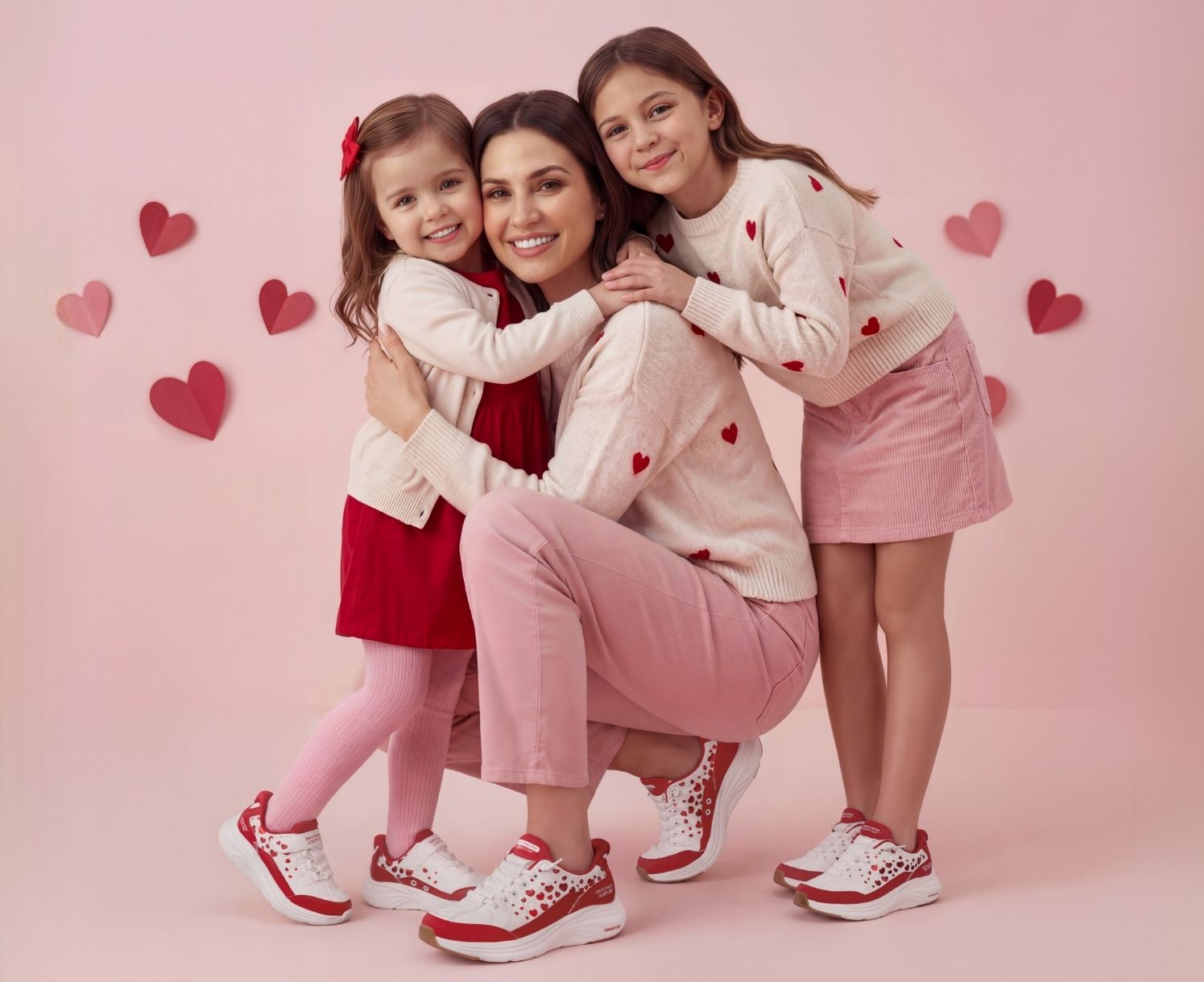 - Air-quilted mesh, duraleather, and leather upper with heart print