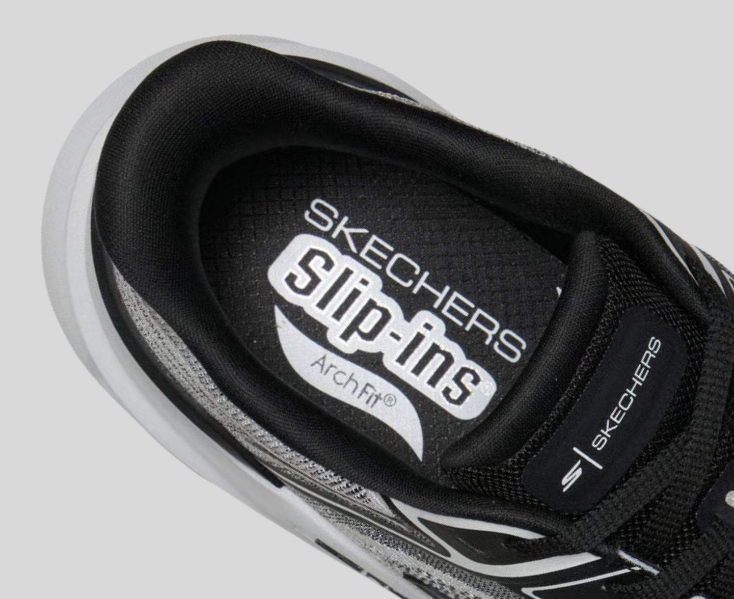 - Patented Skechers Arch Fit® insole system with podiatrist-certified arch support, developed with 20 years of data and 120,000 unweighted foot scans
