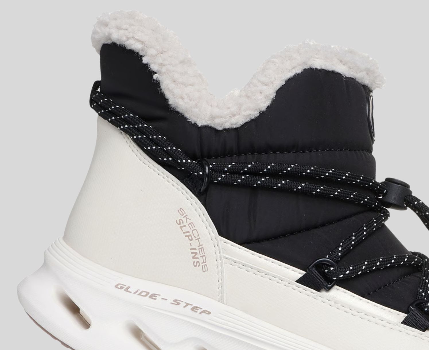 - High-top boot with sherpa lining and trim
