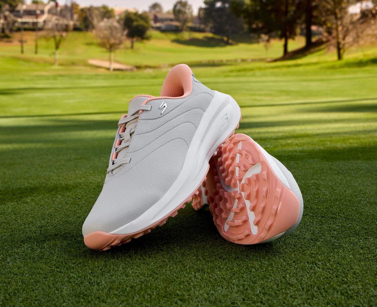 Stay on par in effortless comfort wearing Skechers Hands Free Slip-ins® Golf Waterproof: Flow SI. Designed with our Heel Pillow®, this spikeless waterproof golf slip-on features a sleek synthetic upper with adjustable laces, lightweight ECO FLIGHT cushioning, and a resilient HYPER BURST PRO insole.