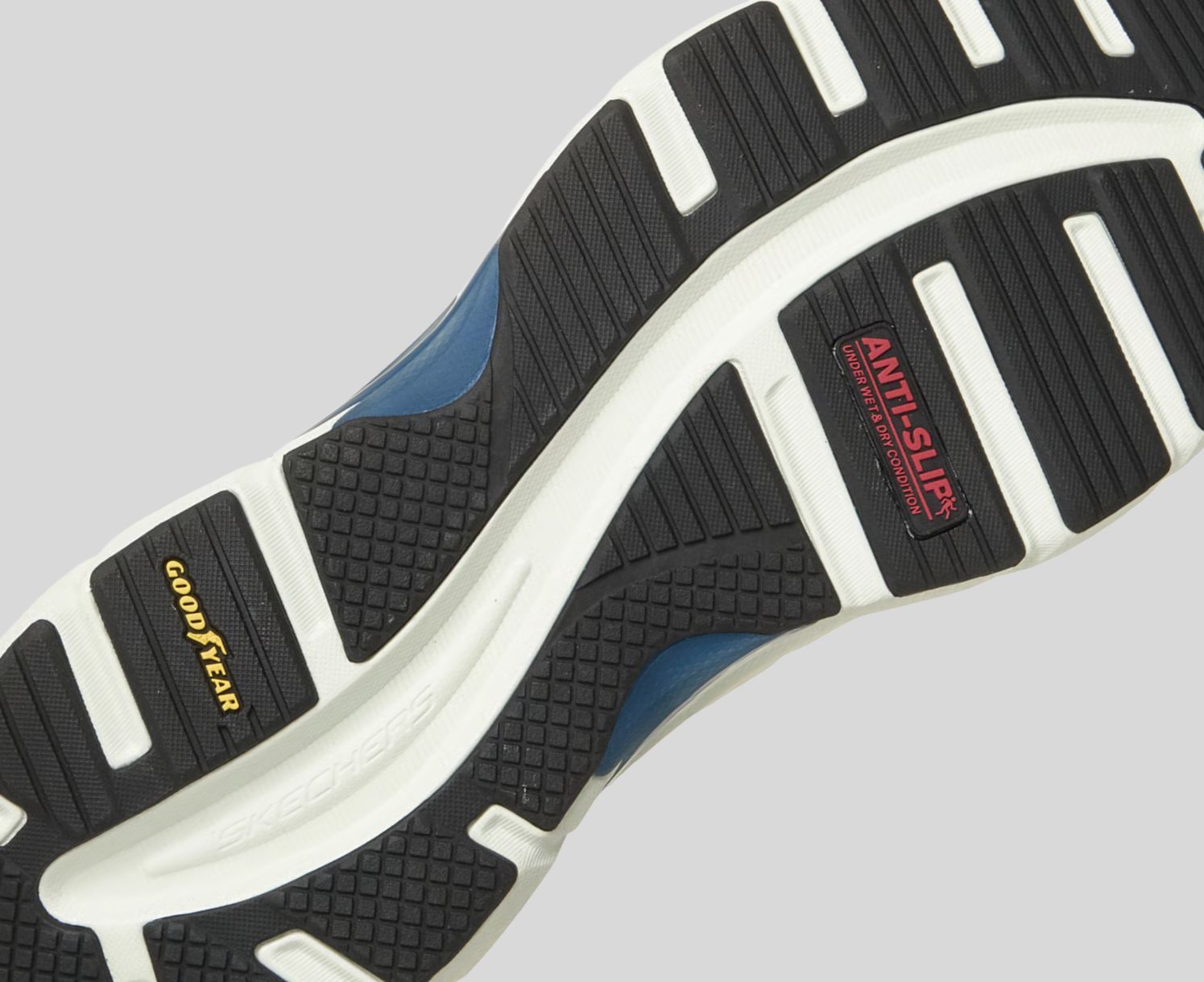 - Goodyear (and Winged Foot Design) are trademarks of or licensed to The Goodyear Tire & Rubber Company used under license by Skechers USA, Inc., Manhattan Beach, CA. © 2026 The Goodyear Tire & Rubber Company. This or any footwear cannot completely eliminate the risk of slipping.